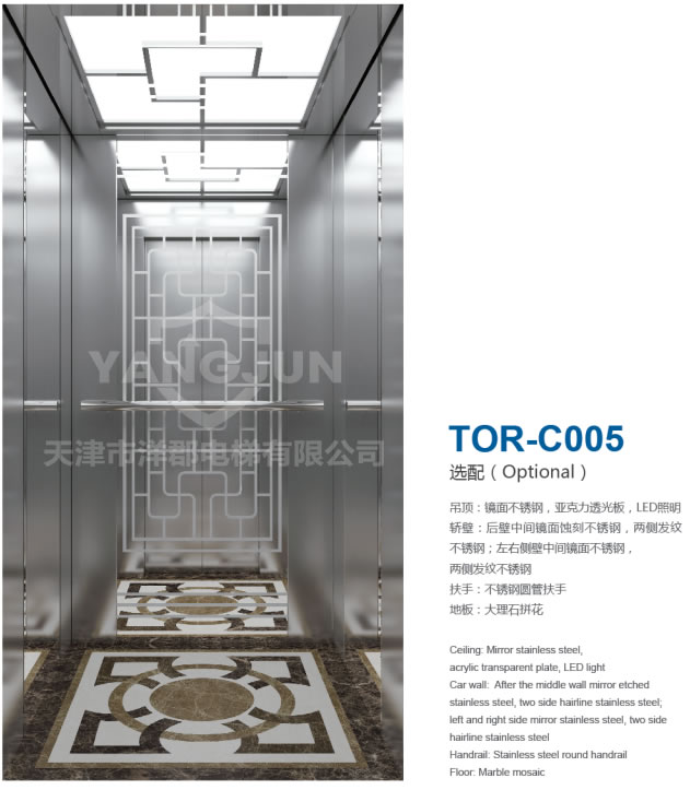 ?? 天津市洋郡電梯有限公司.是一家電梯設計、銷售、安裝、維保服務為一體。主營各種電梯產品,包括別墅電梯、觀光電梯、乘客電梯、住宅 安裝便捷 無需獨立機房,自帶一體化井道。安裝非常簡便,只需一周左右即可完成,而且可以直接安裝在已經完成裝修的地板上而不破壞現有裝修。